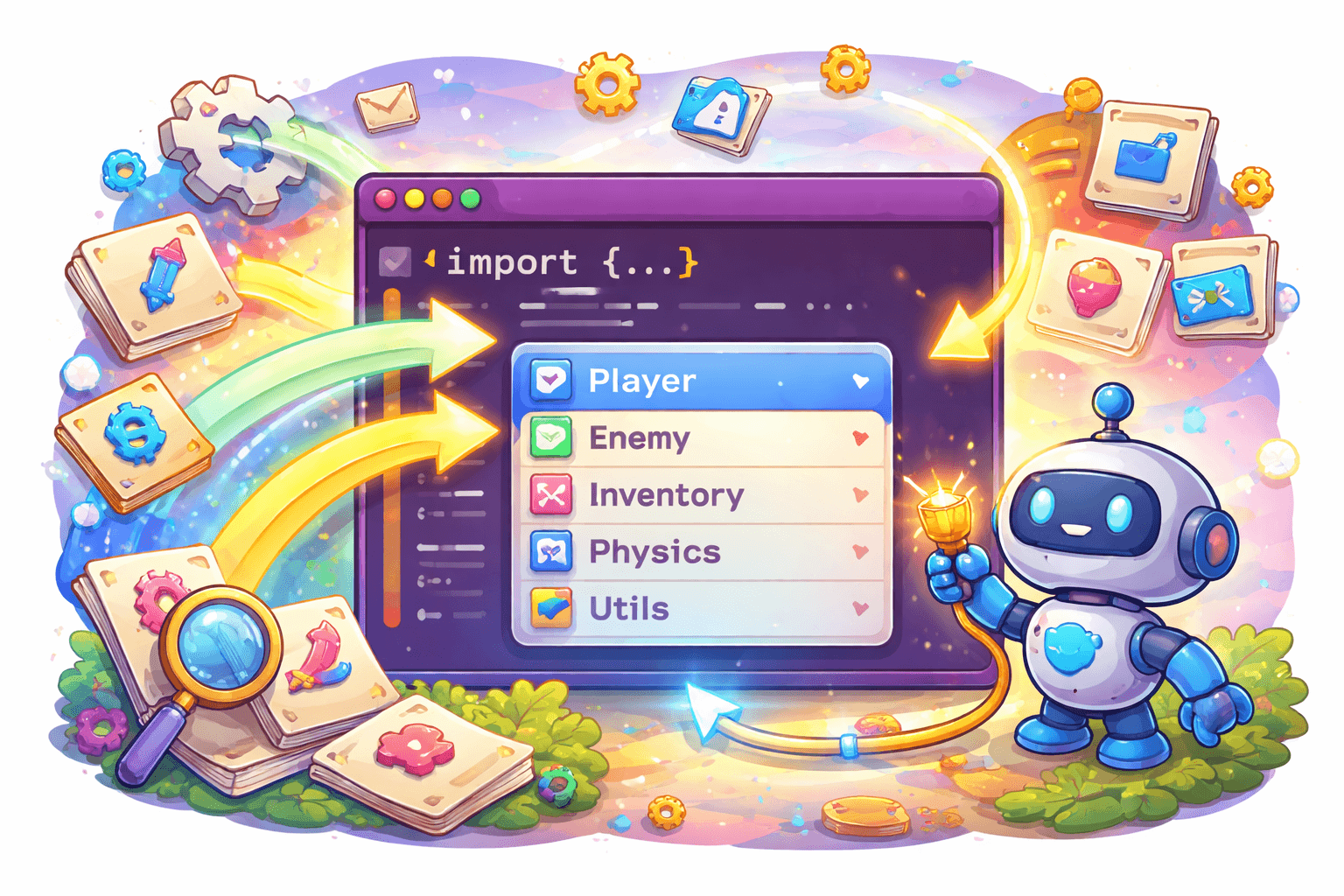 I keep running into the same problem in almost every game I build, especially when the project gets a bit bigger. Once I have a few components, systems, and helper modules, my main file turns into a long wall of imports. Then I add one extra file, forget one import, and lose time debugging something silly.